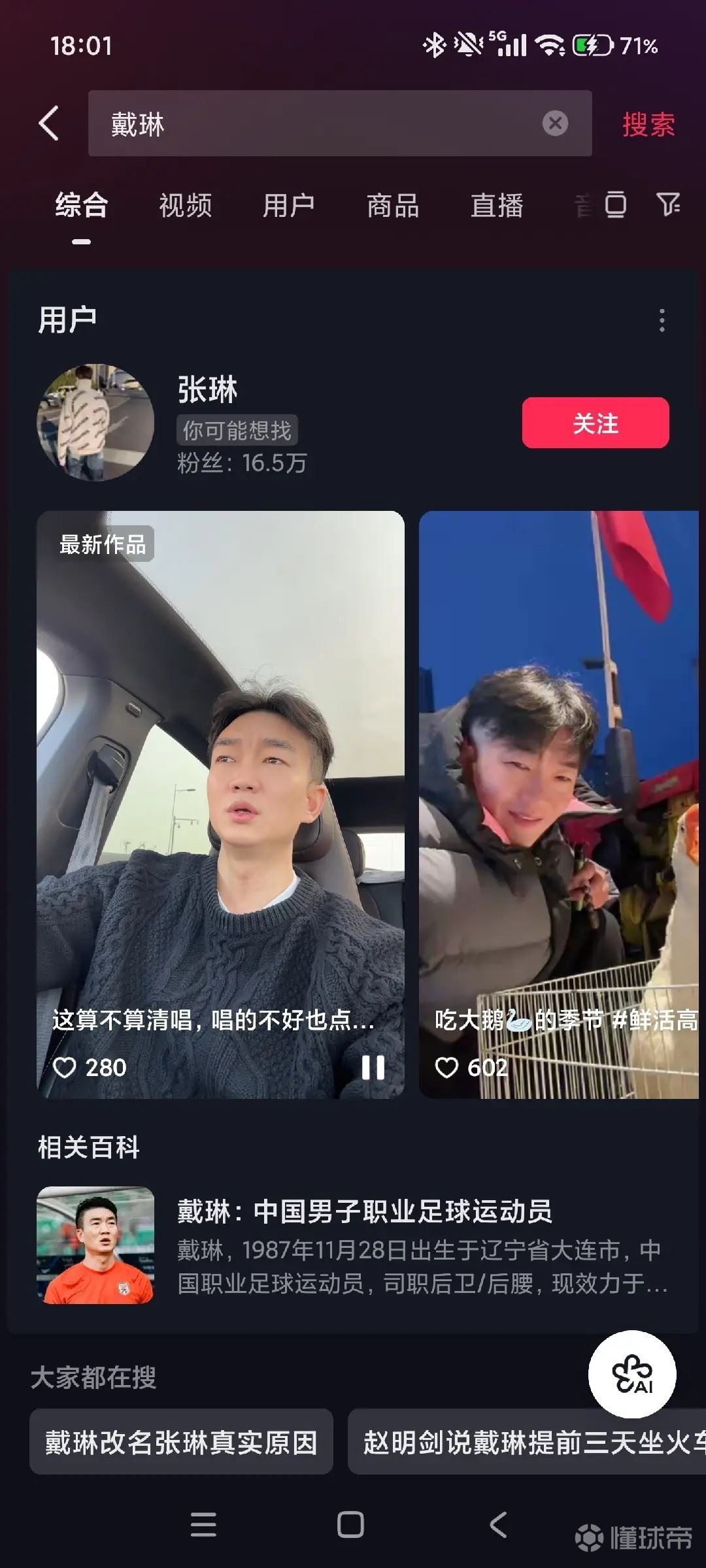 相关信息显示,戴琳的抖音账号拥有16.5万的粉丝,获赞13万,他的粉丝群聊名称依旧叫做“戴老板的群聊”。