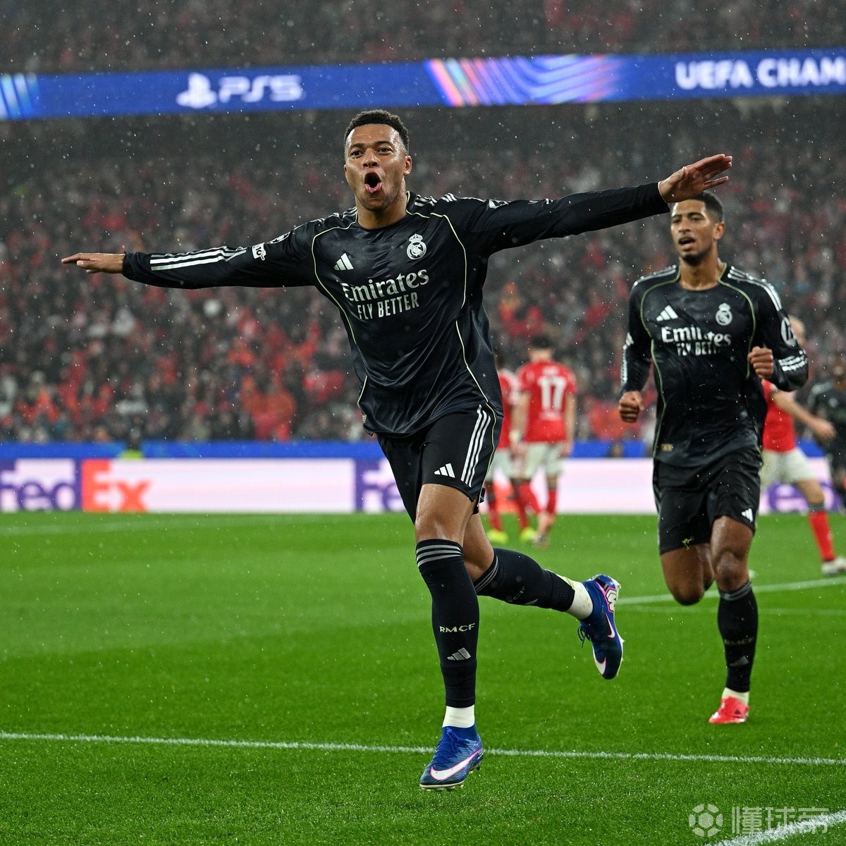 此役客场对阵本菲卡,姆巴佩在比赛第30分钟打入一球。