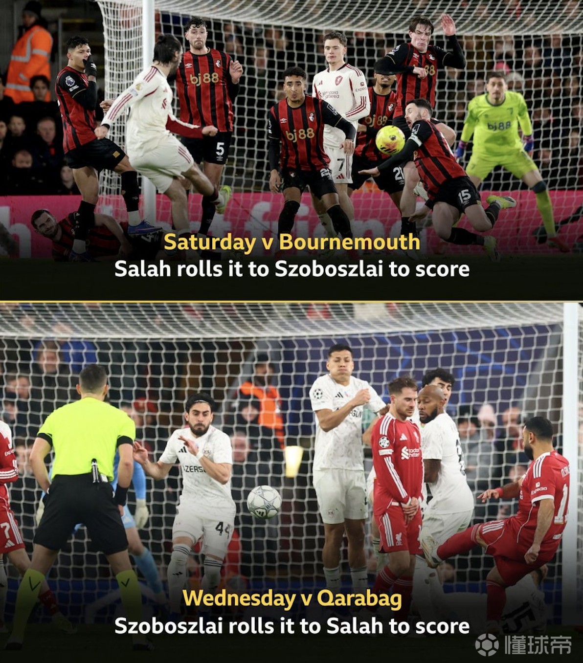 欧冠联赛阶段第8轮,利物浦主场对阵卡拉巴赫,下半场索博斯洛伊助攻萨拉赫破门,两人连续两场比赛通过战术任意球互相助攻。上周末英超客场对阵伯恩茅斯,在一次任意球进攻中,萨拉赫做球,索博斯洛伊完成破门。此役欧冠主场对阵卡拉巴赫,索博斯洛伊投桃报李,在另一侧的任意球进攻中,索博斯洛伊为萨拉赫做球,由后者射门得分。    体育   PP体育   聚力体st育   英超直播   西甲   亚冠直播   欧冠直播   德甲直播   欧联杯