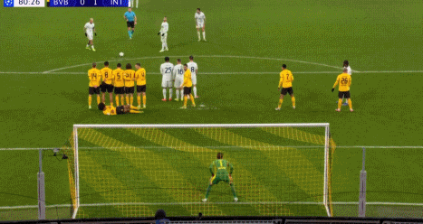 第80分钟,迪马尔科任意球世界波破网,国米打破僵局1-0!