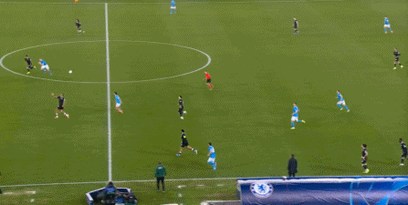 如果一定要分出高下,切尔西要稍好一点点,这体现在他们在将那不勒斯阵型抻开,包括通过争夺二点球来打转换的时候,还是可以在右半扇打出想要的配合: