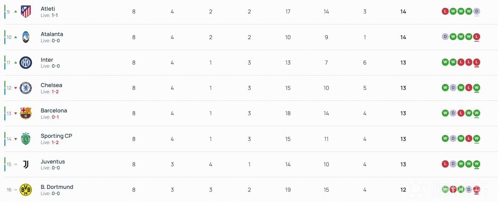 北京时间1月29日,欧冠联赛阶段最后一轮18场比赛全部结束了上半场的争夺。上半场结束后,曼城进入前八名,切尔西掉出前八名。西甲双雄皇马、巴萨目前都暂时落后,分别掉至第5和第13。半场结束后的1-8名半场结束后的9-16名半场结束后的17-24名半场结束后的25-32名本轮开始前积分榜    体育   PP体育   聚力体st育   英超直播   西甲   亚冠直播   欧冠直播   德甲直播   欧联杯