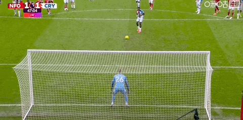 第45+1分钟,萨尔主罚点球破门,水晶宫1-1扳平诺丁汉森林