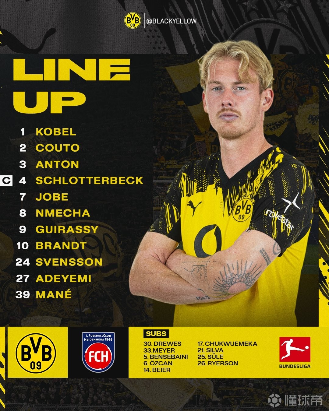 北京时间2月2日0:30,德甲第20轮,多特主场对阵海登海姆。赛前首发公布。